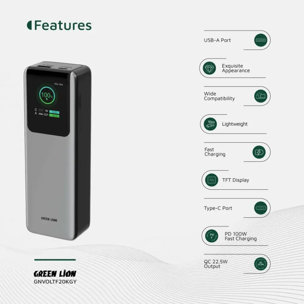 معرفی پاوربانک Green Lion Voltura 20000mAh PD100W